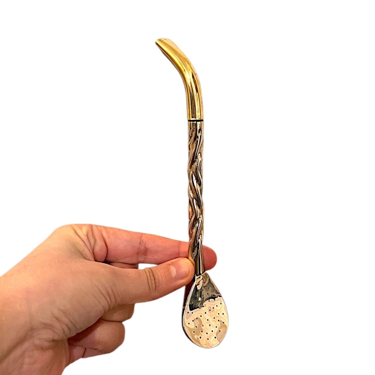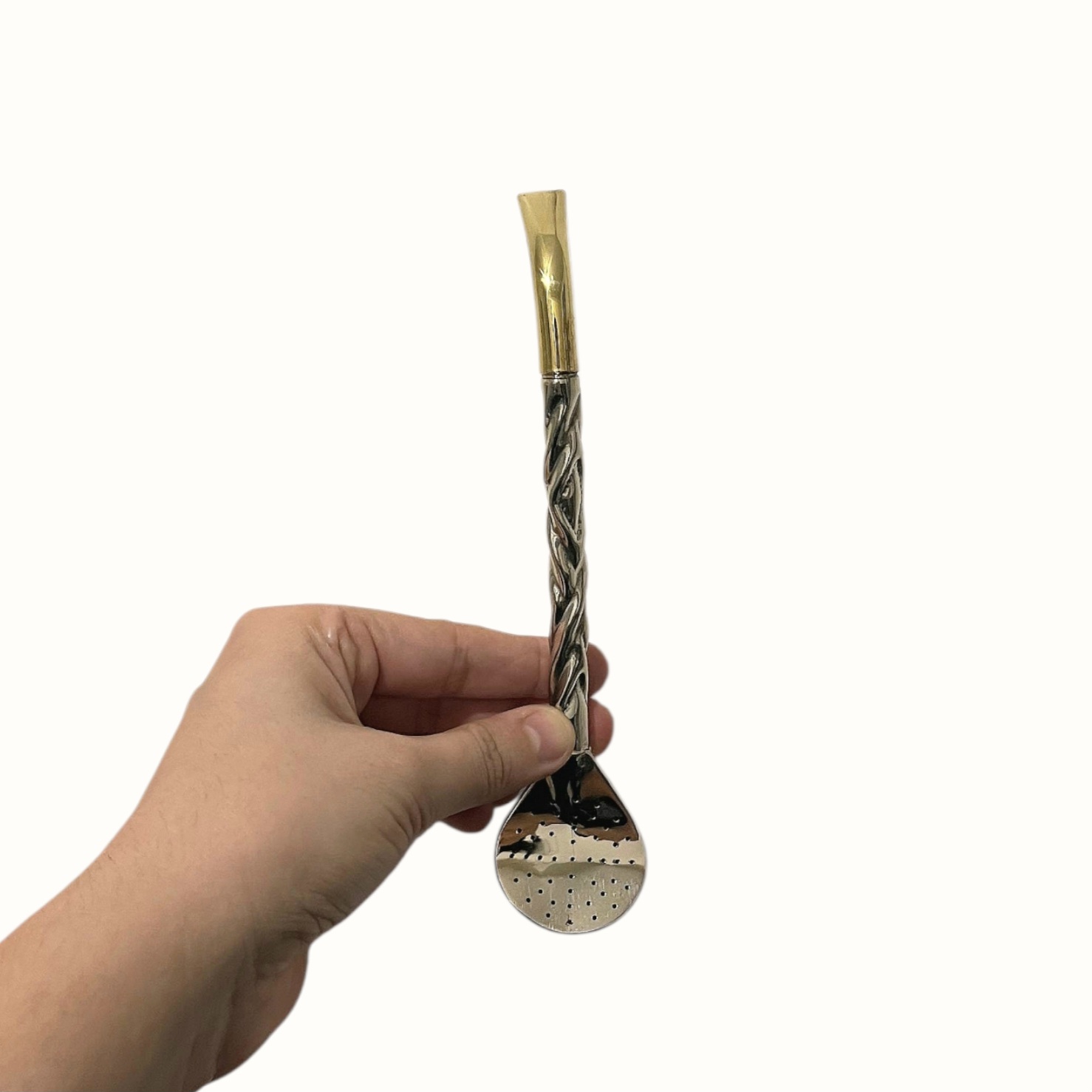 Pair your mate with this engraved Pico Loro bombillon, a beautiful handcrafted piece. Made by hand by an Argentine artisan in bronze and alpaca, it features an extra-fine hole filter. It is perfect for drinking all types of mate herbs.