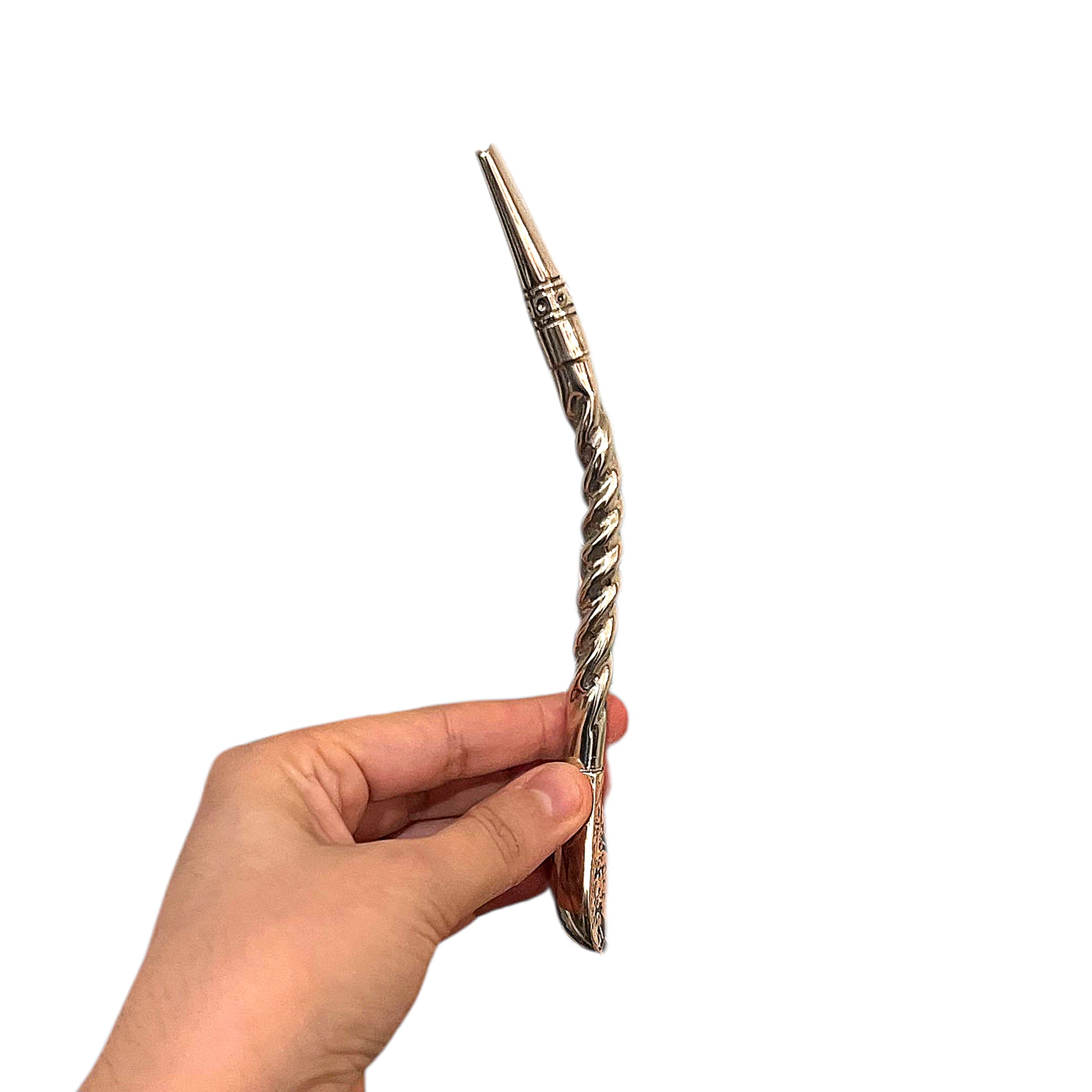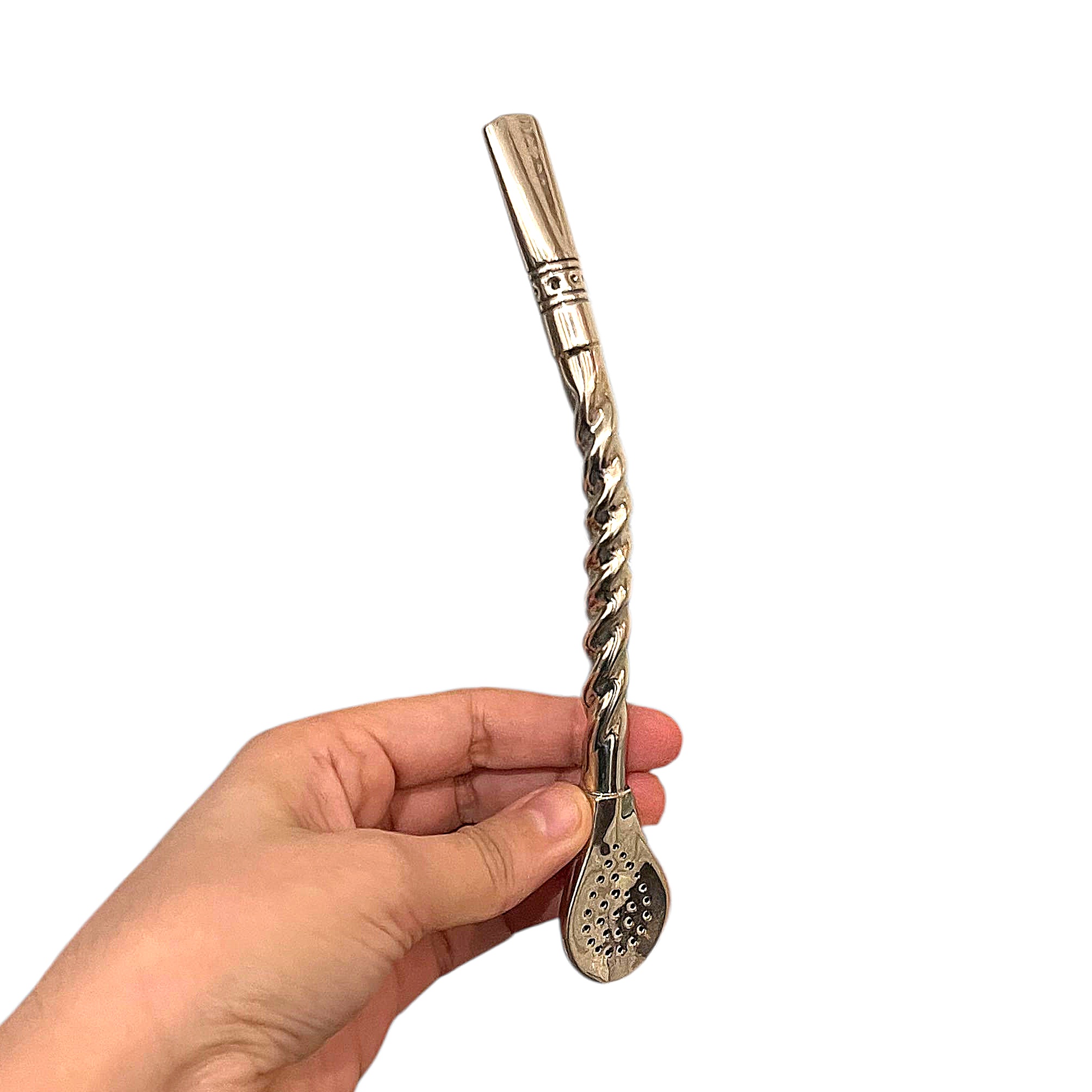 La bombilla pico de rey en alpaca Tressée est une pièce artisanale façonnée à la main par un maître artisan en Argentine. Sa tige est travaillée en torsade, formant un motif tressé continu qui apporte relief, élégance et caractère à l’ensemble.