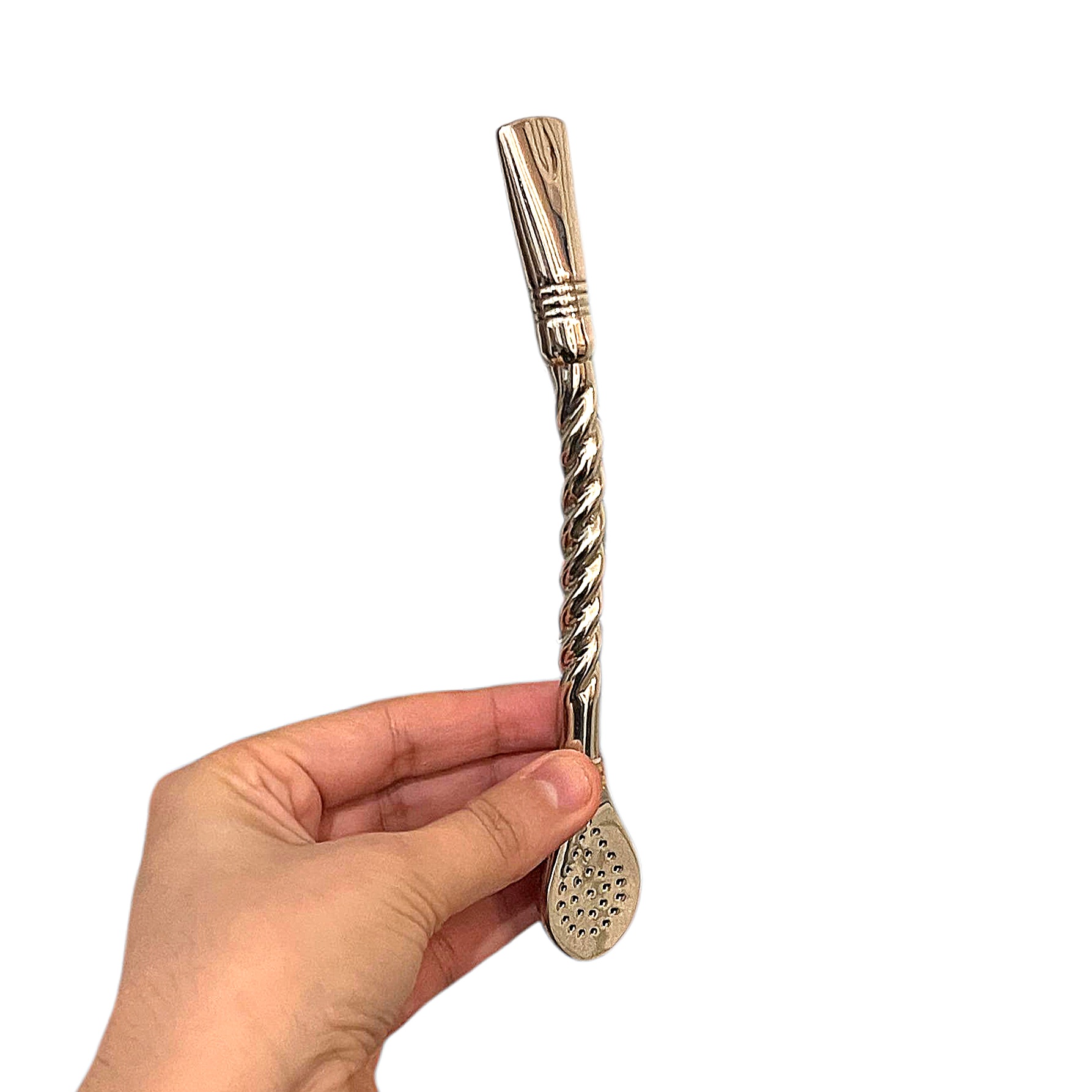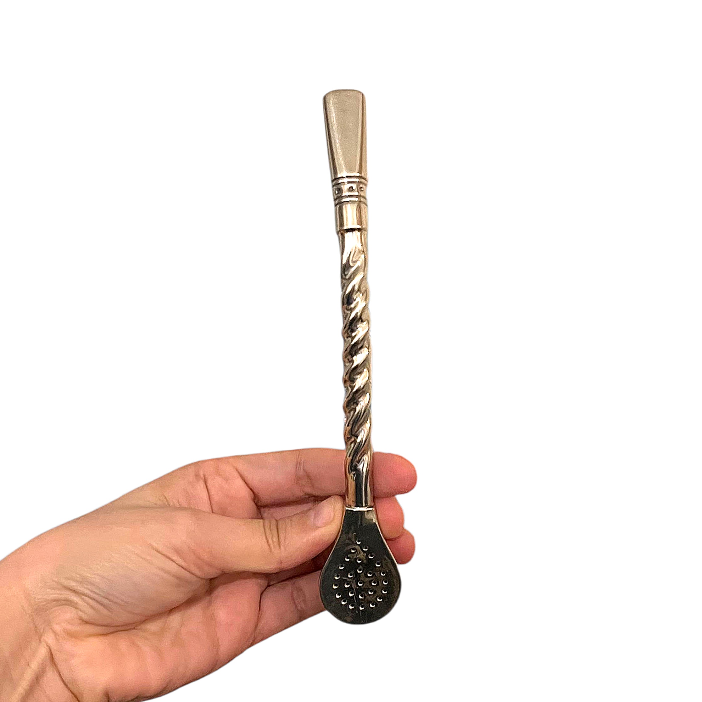 Entièrement réalisée en alpaca, un alliage reconnu pour sa solidité et sa durabilité, cette bombilla offre une excellente résistance à l’usage et une expérience de dégustation confortable. Sa forme pico de rey assure une aspiration fluide et une filtration efficace de la yerba mate.