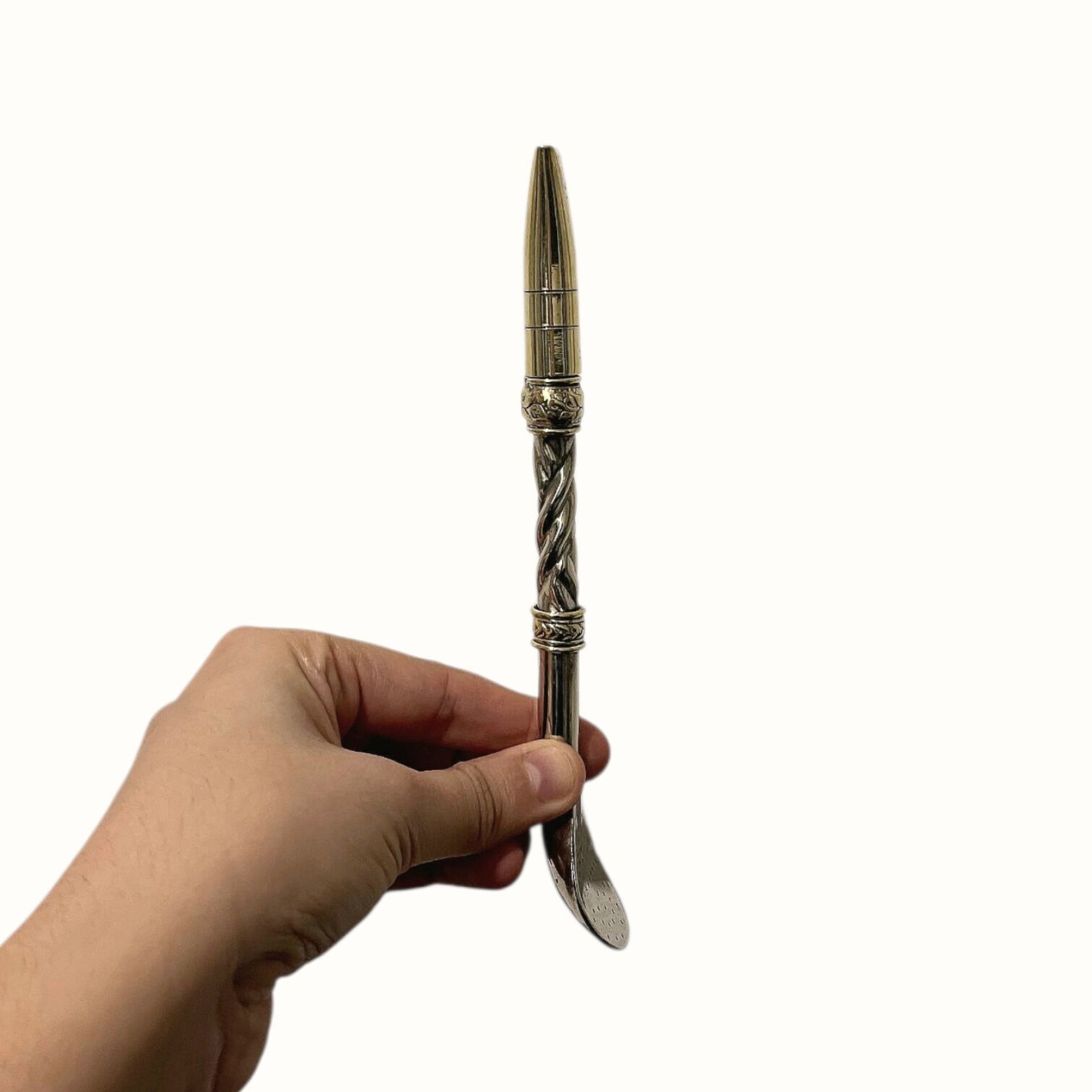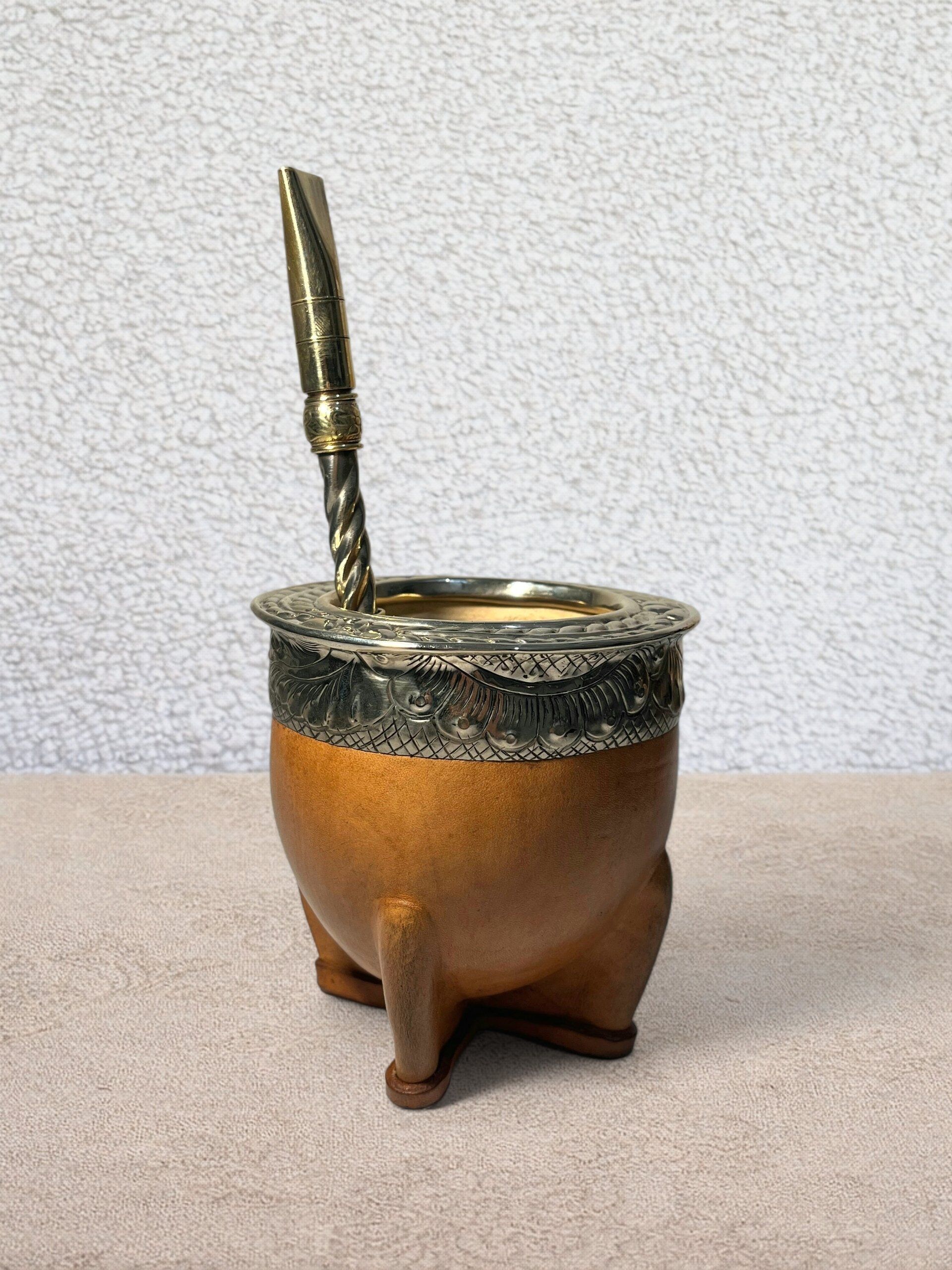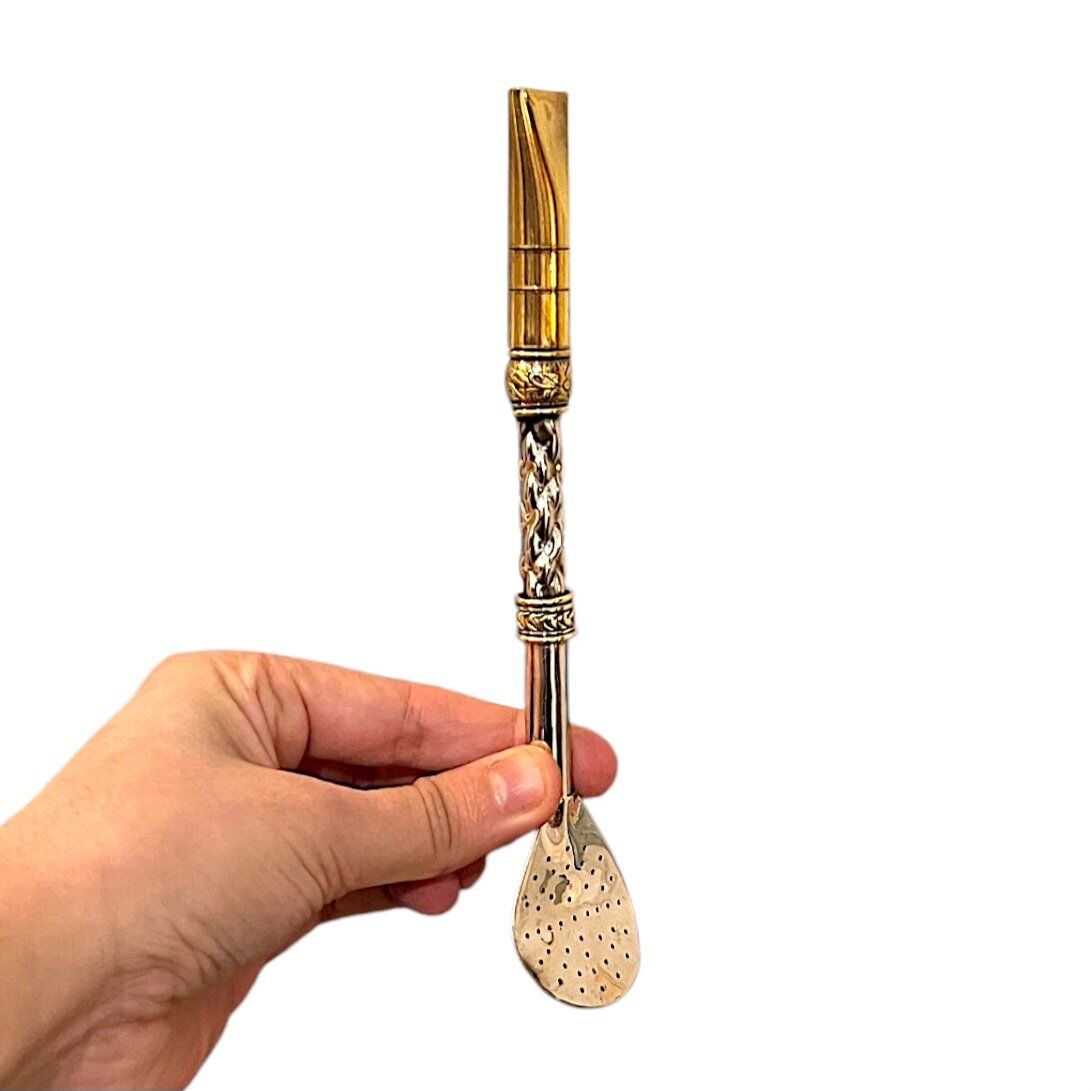 Associez votre maté à ce bombillon gravé, une magnifique pièce artisanale. Fabriqué à la main par un artisan Argentin en bronze et alpaca, il est monté d’un filtre à trous extra fins. Il est parfait pour boire tout type d’herbes à maté.