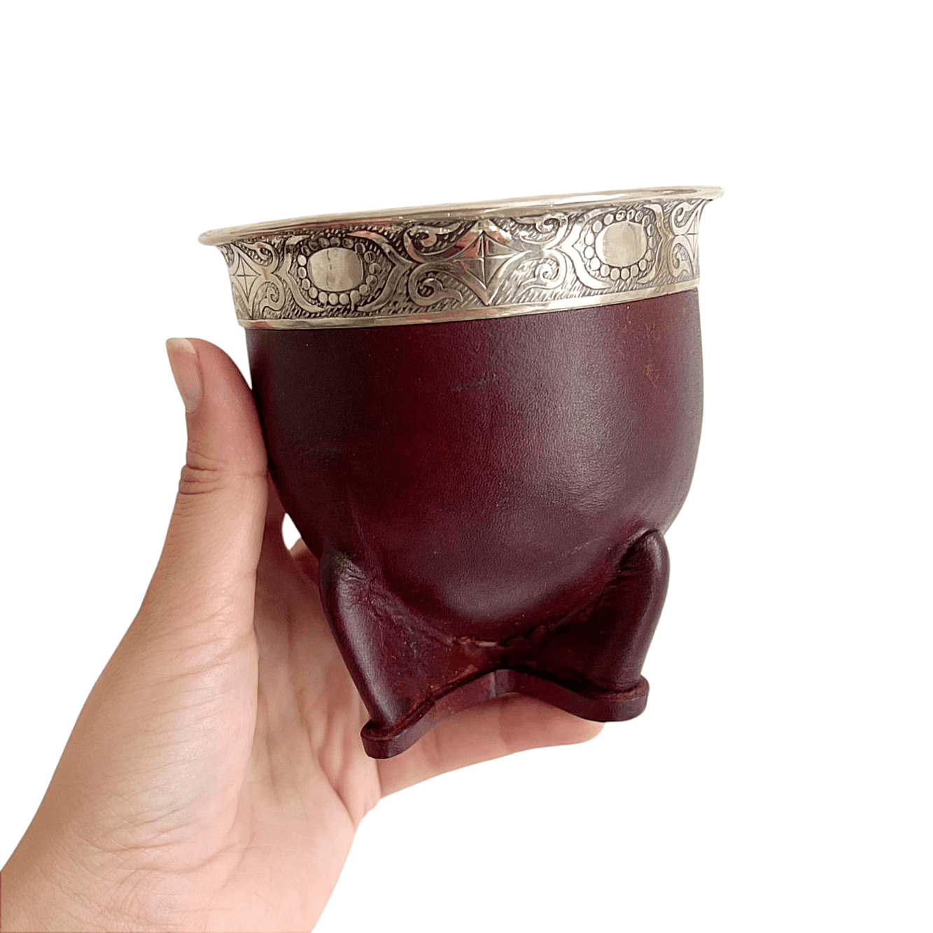 Découvrez cette calebasse à maté artisanale, un modèle impérial unique issu du savoir-faire traditionnel argentin. Habillée de cuir marron chaud et fabriquée à la main en très petites quantités, elle incarne l’élégance rustique, l’esprit gaucho et l’authenticité du rituel du maté. Sa contenance moyenne en fait un excellent choix pour un usage quotidien avec votre herbe à maté.