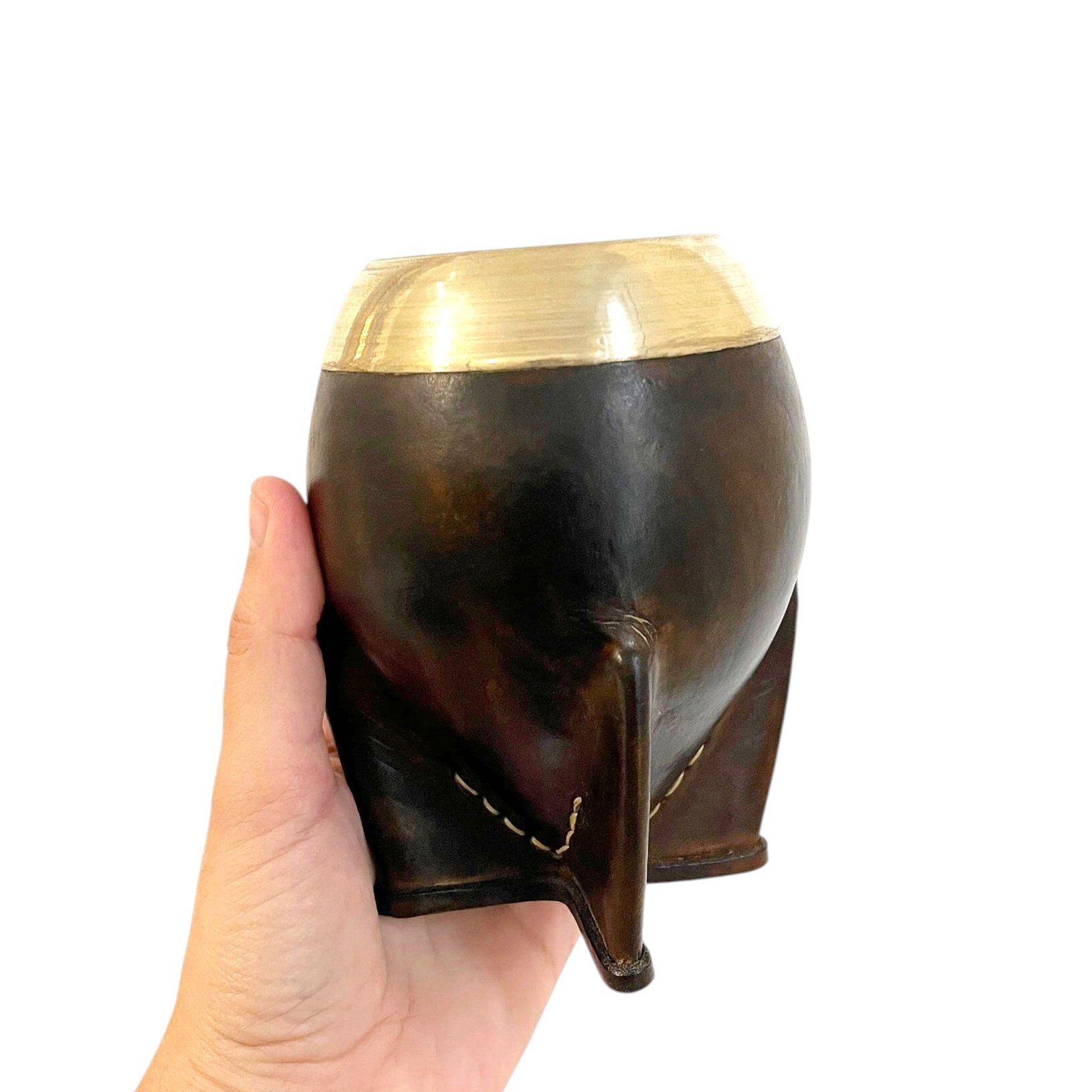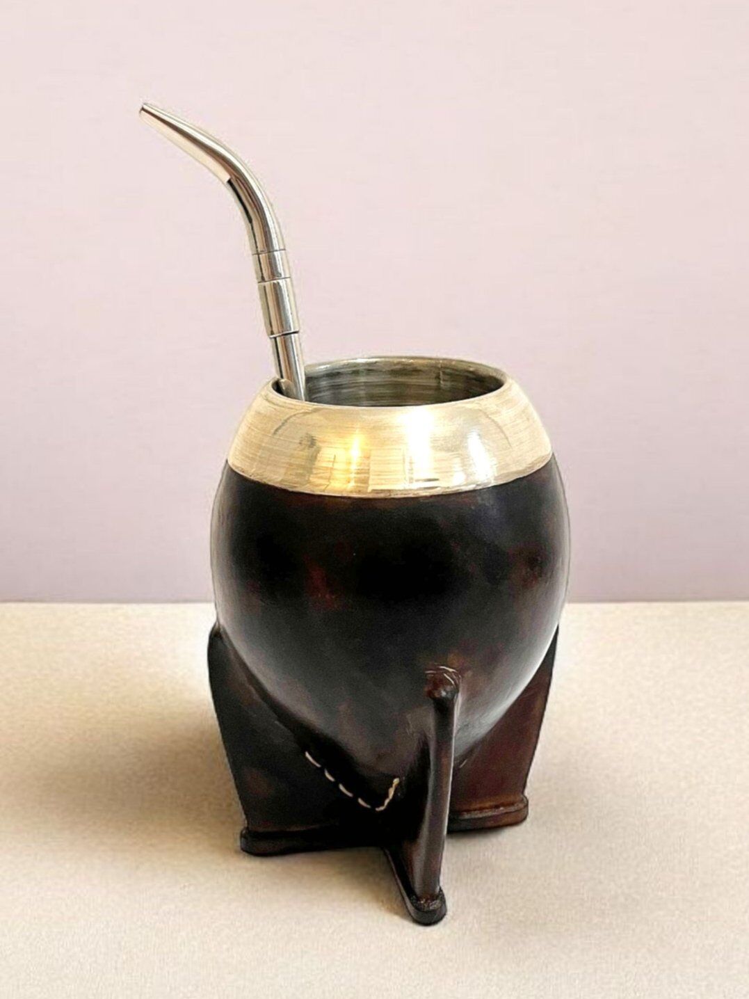 Recouverte de cuir brun de qualité, elle associe esthétique et robustesse. Sa virola lisse en alpaca ajoute une touche raffinée et durable, soulignant le caractère authentique de ce modèle. Idéale pour un usage quotidien, elle allie la tradition du maté uruguayen à une finition haut de gamme.