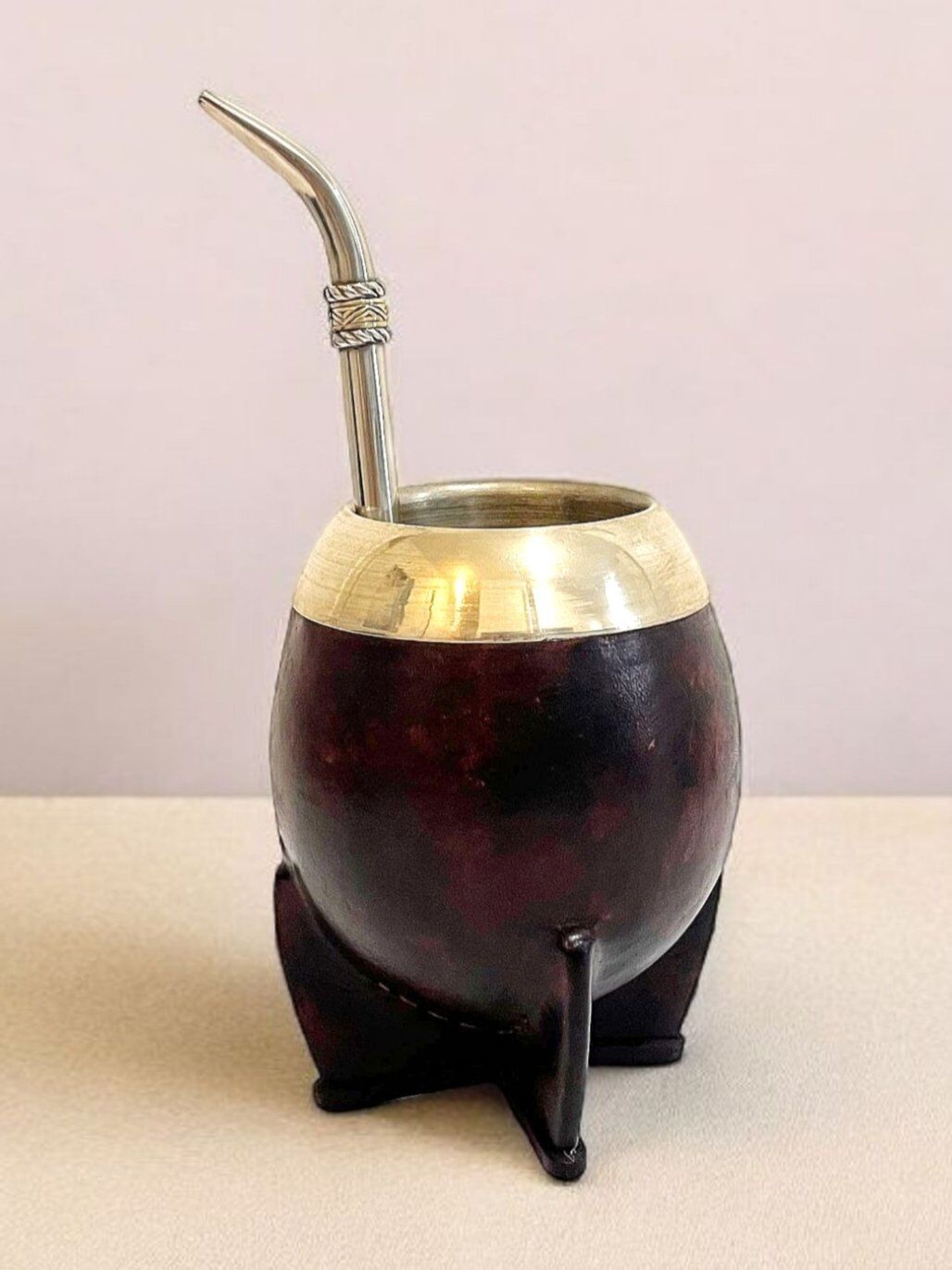 La calebasse à maté torpedo marron – Uruguay est un modèle raffiné qui incarne parfaitement la tradition du maté uruguayen. Fabriquée à la main par des artisans locaux, elle se distingue par sa forme arrondie typique du style torpedo, appréciée pour son équilibre et son confort d’utilisation.
