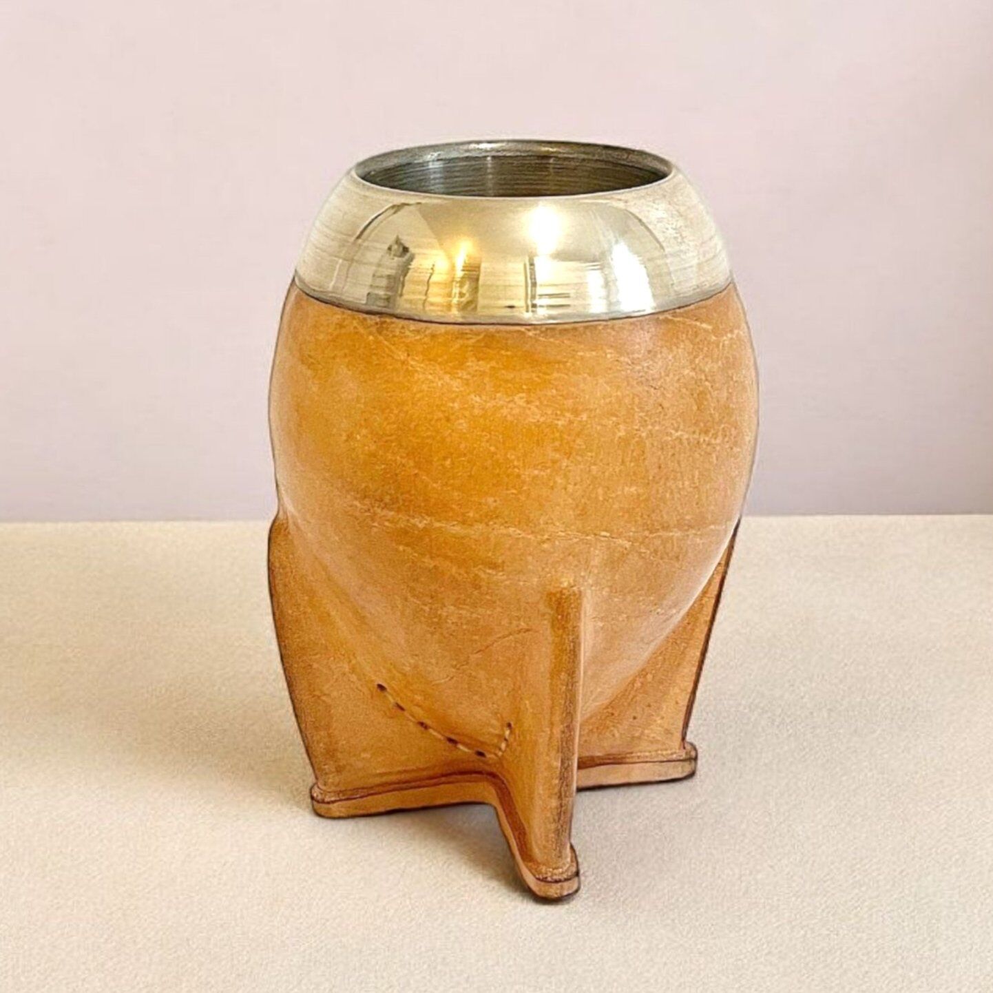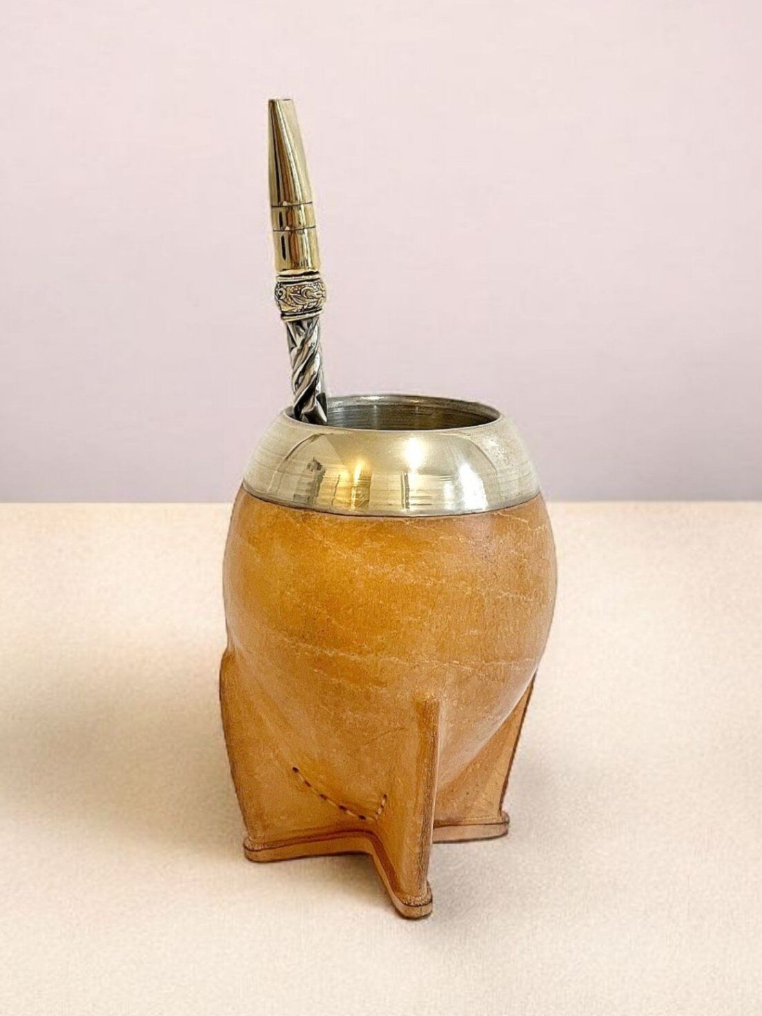 Sa virola en alpaca lisse apporte une touche de raffinement tandis que son cuir sable de qualité supérieure offre un rendu naturel et intemporel. Ce modèle premium allie authenticité et confort, idéal pour apprécier le maté dans la plus pure tradition uruguayenne.