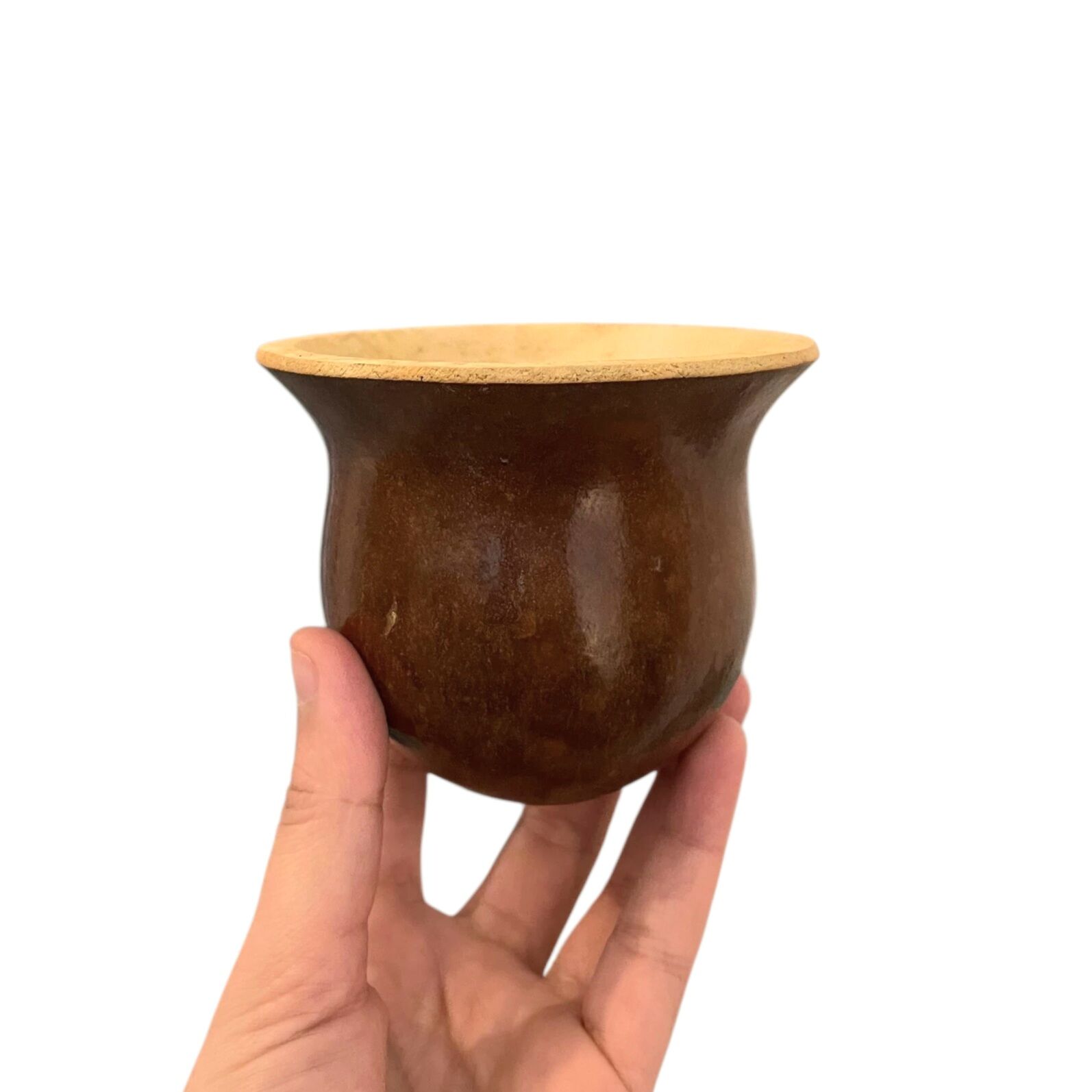 La profondeur du marron met en valeur les écailles naturelles du cuir, offrant une présence élégante et authentique. Chaque pièce présente des variations propres à la matière et au travail artisanal, rendant chaque calebasse singulière. Son format camionero, de petite contenance, permet une dégustation individuelle fidèle au rituel traditionnel du maté.