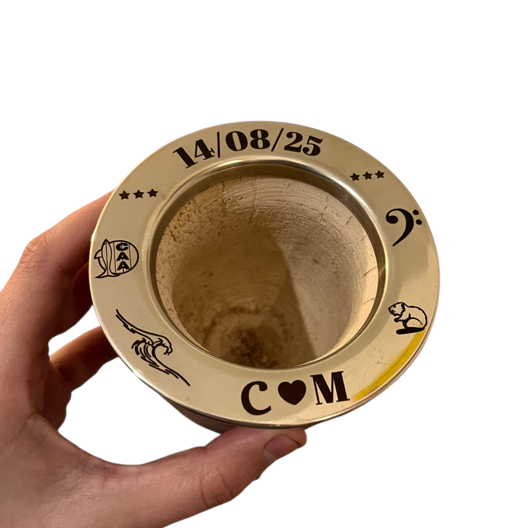 Chaque calebasse est personnalisée selon vos choix, avec une gravure laser réalisée sur la virola. Il est possible d’y graver des initiales, un texte, un logo ou une image, après échange et validation afin de garantir un rendu esthétique et durable.