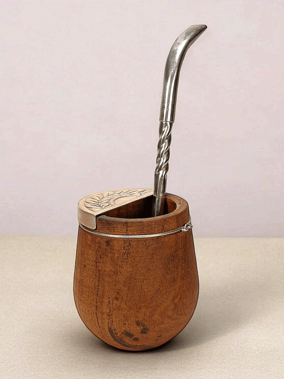 Découvrez notre maté en bois artisanal alpaca haut de gamme, conçu pour les amateurs de maté alliant raffinement et praticité. Chaque pièce est unique, fabriquée à la main avec un bois soigneusement sélectionné pour sa qualité exceptionnelle. Contrairement aux calebasses traditionnelles ou à la plupart des matés en bois, l’intérieur est spécialement traité pour éviter la curation traditionnelle.