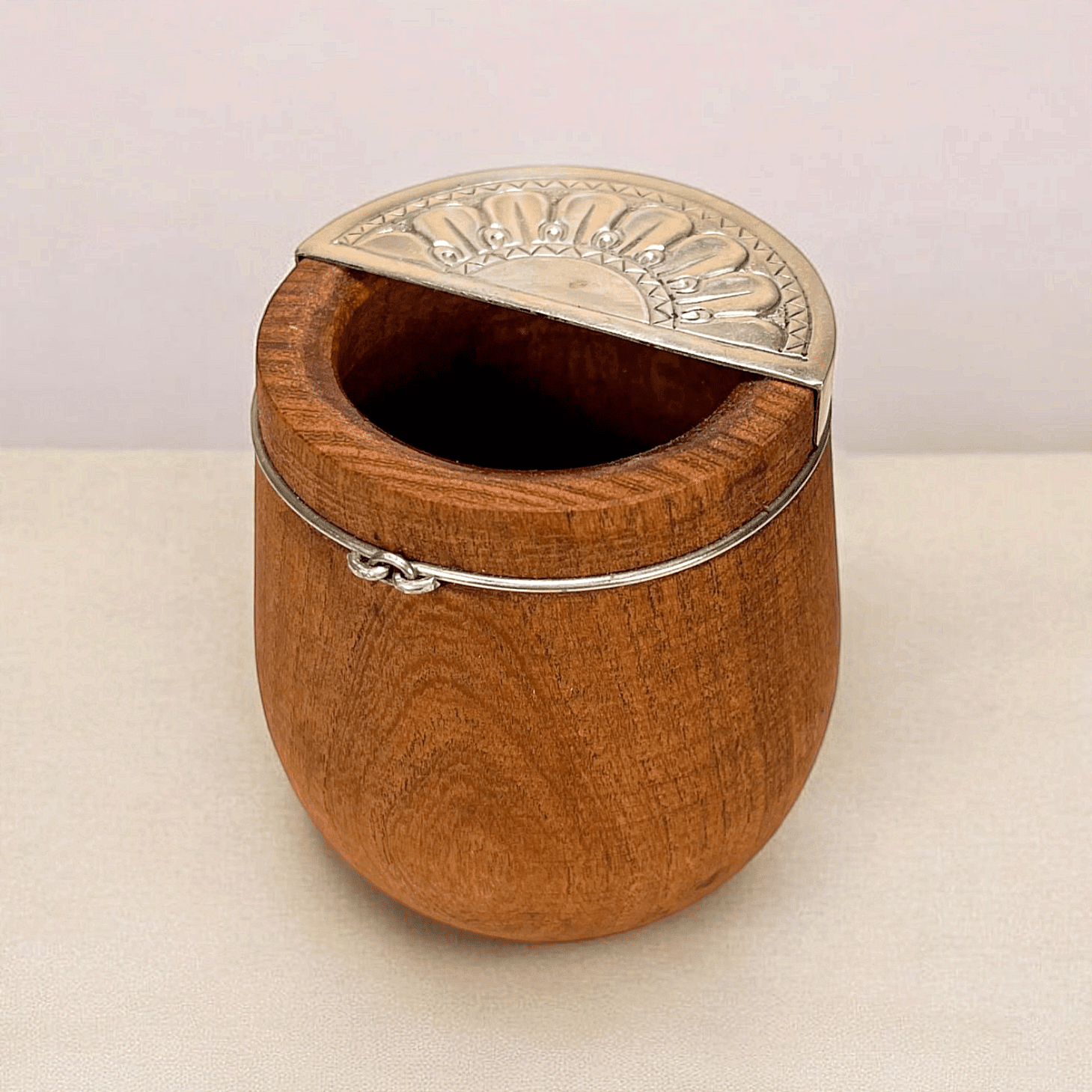 Découvrez notre maté en bois artisanal alpaca haut de gamme, conçu pour les amateurs de maté alliant raffinement et praticité. Chaque pièce est unique, fabriquée à la main avec un bois soigneusement sélectionné pour sa qualité exceptionnelle. Contrairement aux calebasses traditionnelles ou à la plupart des matés en bois, l’intérieur est spécialement traité pour éviter la curation traditionnelle.