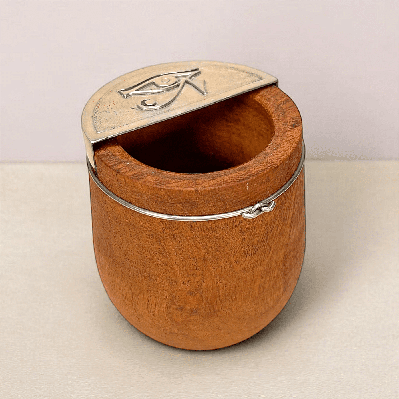 Ce maté en bois artisanal alpaca se distingue par sa matepa en alpaca gravée à la main, ornée d’un œil égyptien finement détaillé, symbole de protection et de mystère. Un mélange parfait d’artisanat raffiné et de fonctionnalité pour une expérience matera inégalée.
