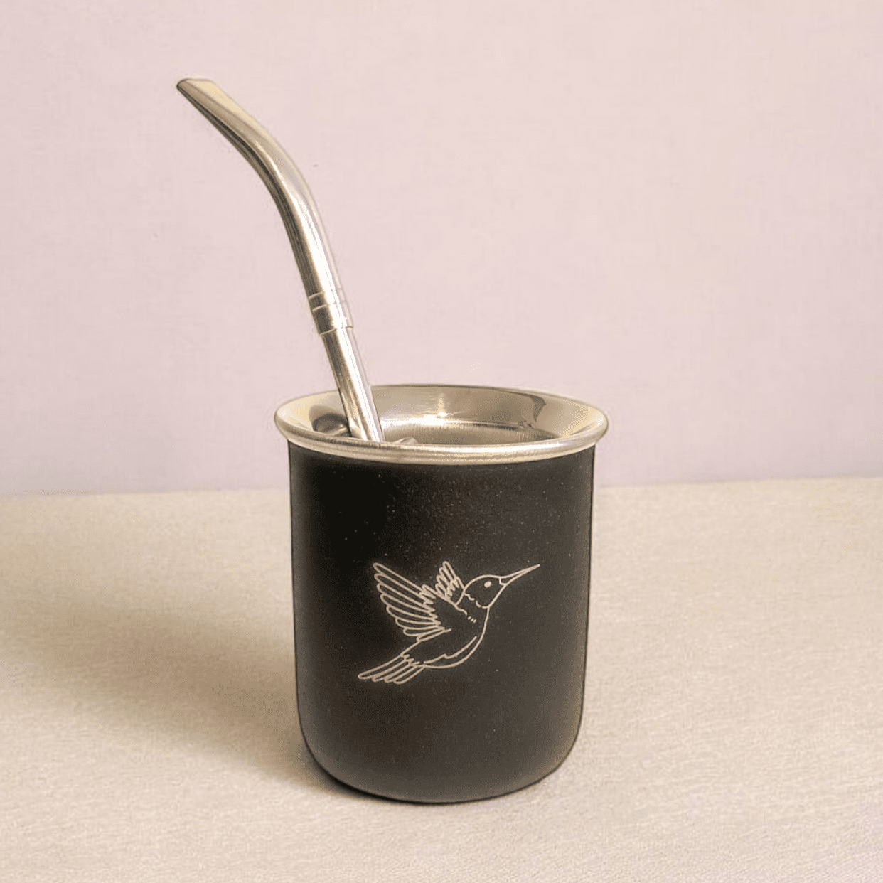 Le Maté + Bombilla inox droit Colibri est un ensemble pratique et élégant pour découvrir ou profiter du maté au quotidien. La calebasse en acier inoxydable, sans revêtement en cuir, est légère, facile à entretenir et consomme peu de yerba, idéale pour des sessions rapides ou pour débuter.