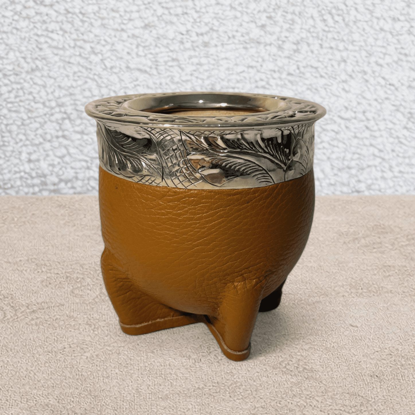 Le maté impérial artisanal double cuir beige est un modèle élégant et contemporain, conçu pour ceux qui recherchent une calebasse de caractère tout en respectant la tradition du maté. Fabriqué à la main de manière artisanale, il reprend la forme impériale classique, avec une ouverture large et bien équilibrée, idéale pour une préparation confortable et une dégustation agréable au quotidien.