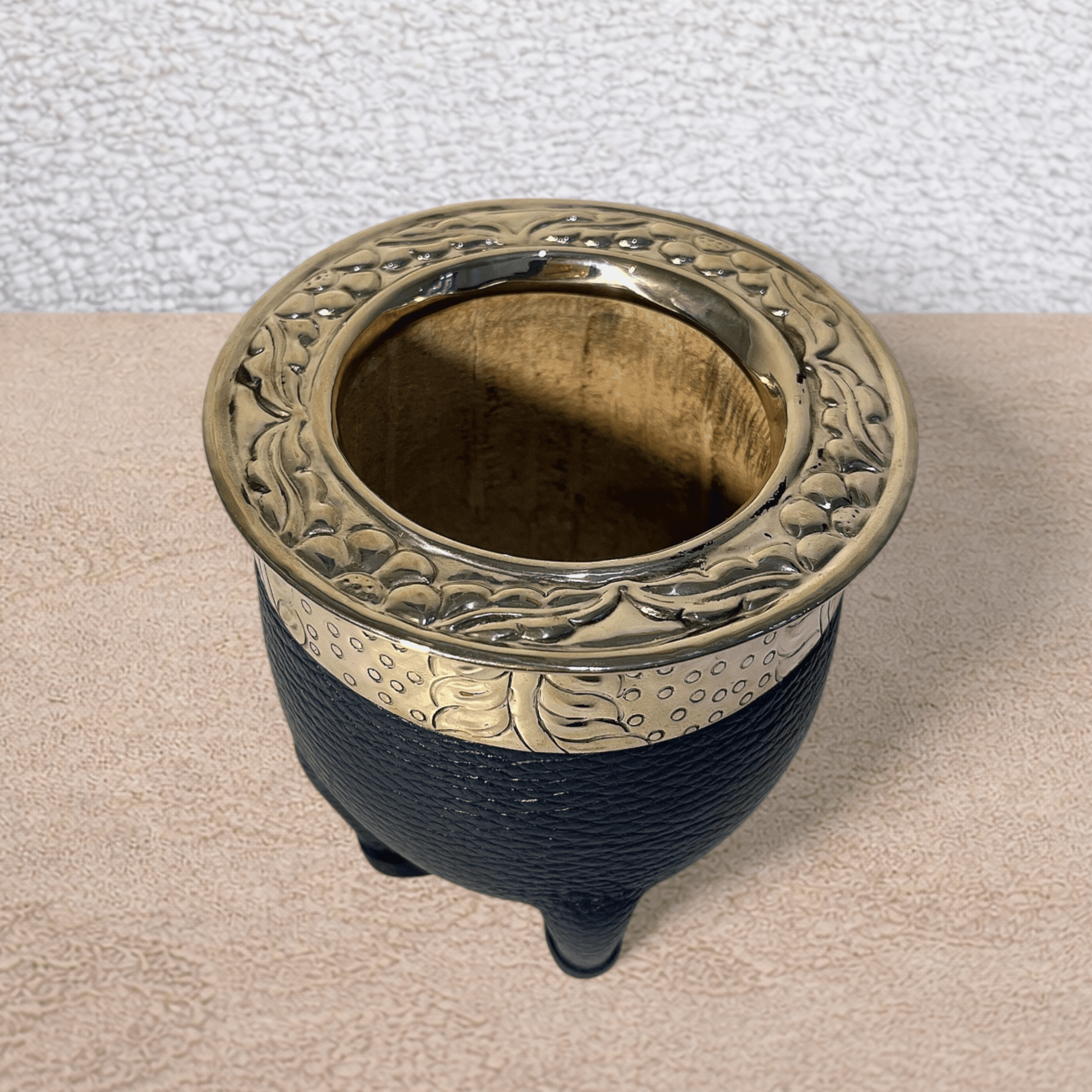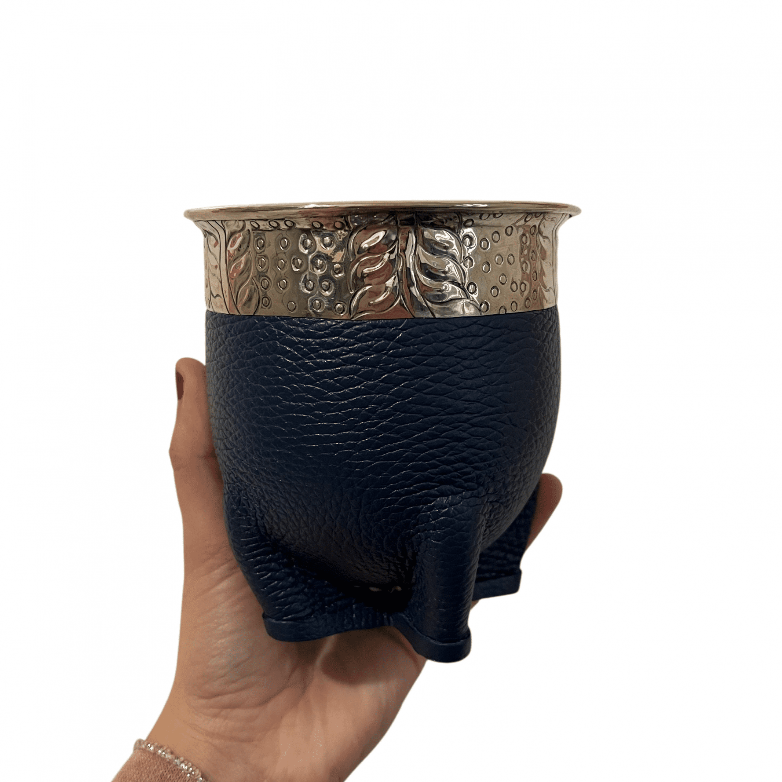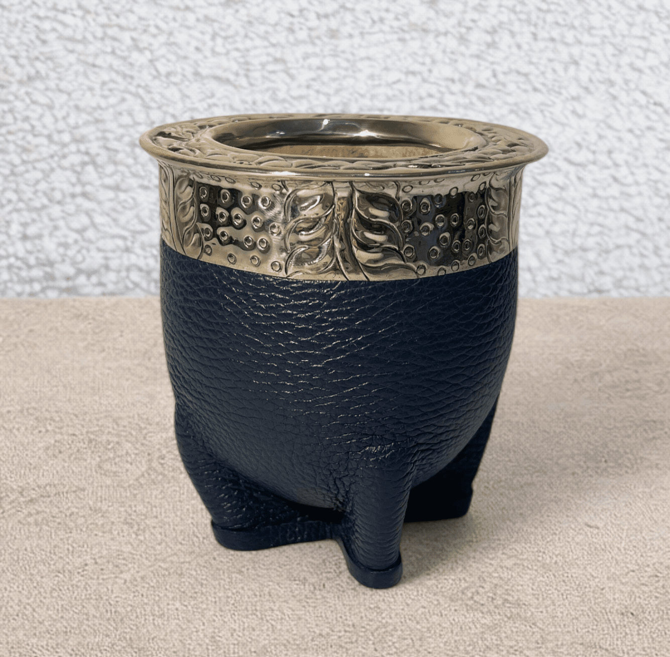 Le maté impérial artisanal double cuir bleu est un modèle au style distinctif, qui associe tradition et esthétique contemporaine. Fabriqué à la main de manière artisanale, il reprend la forme impériale classique, avec une ouverture large et équilibrée, idéale pour une préparation soignée et une dégustation confortable du maté.
