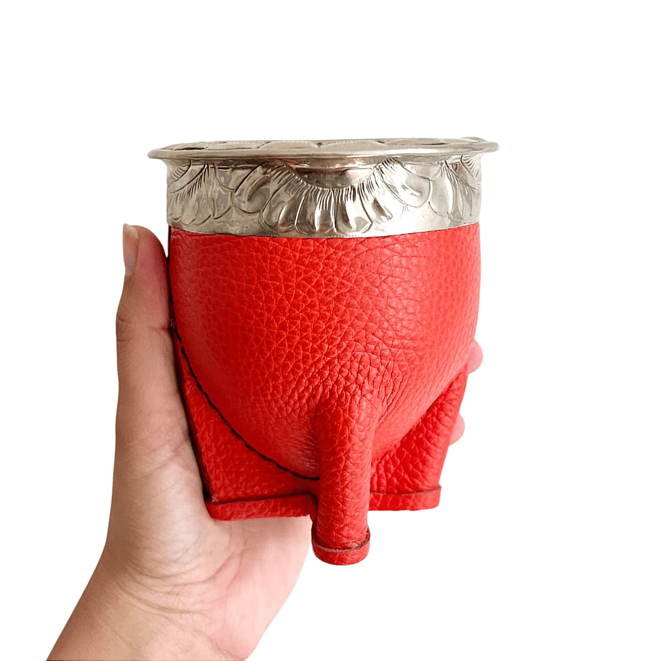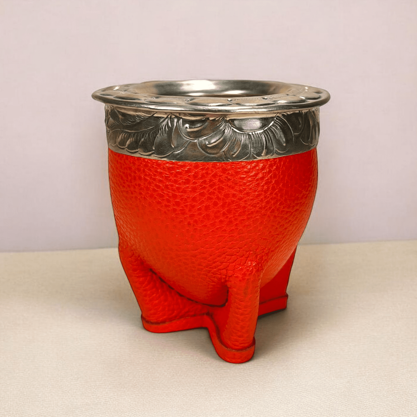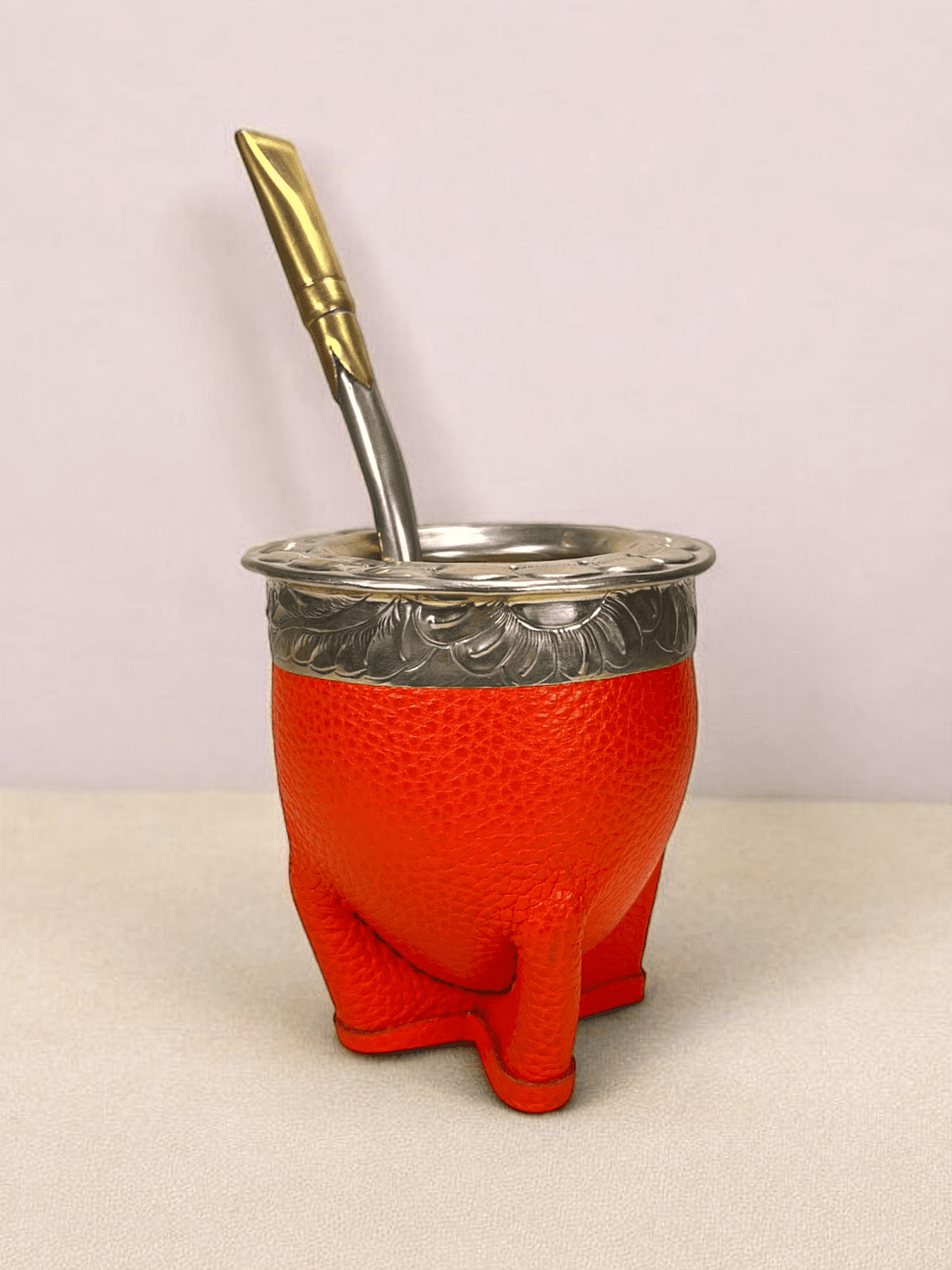 Ce maté imperial double cuir orange est entièrement confectionné à la main par un artisan en Argentine, terre de mate.